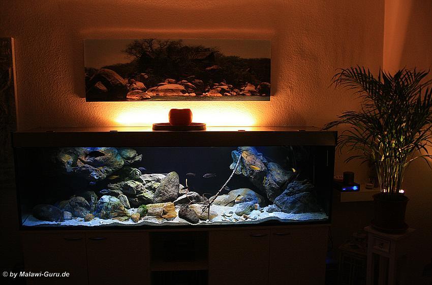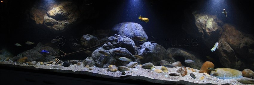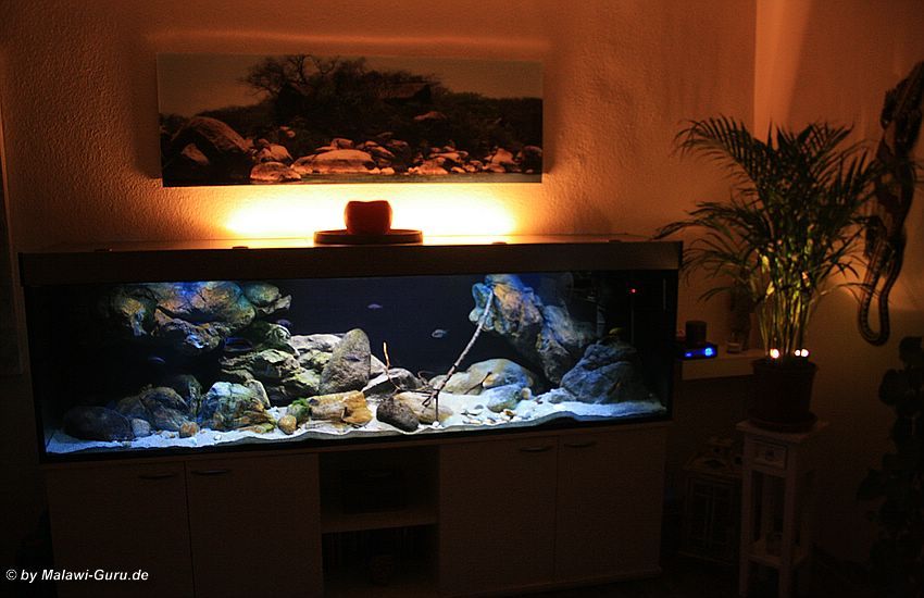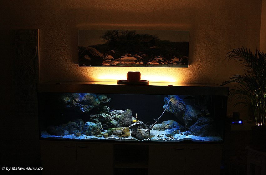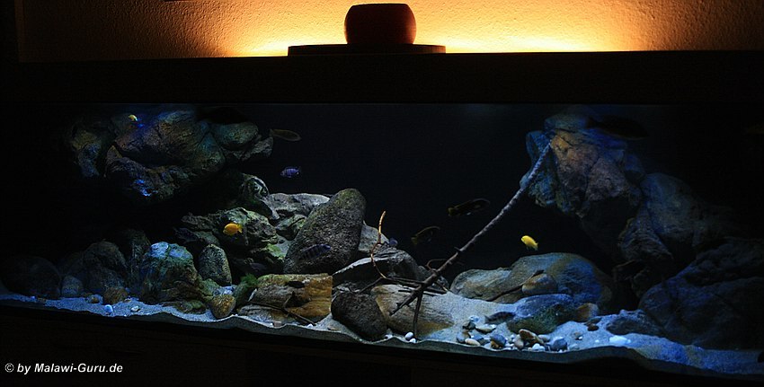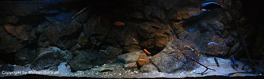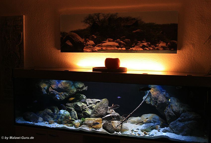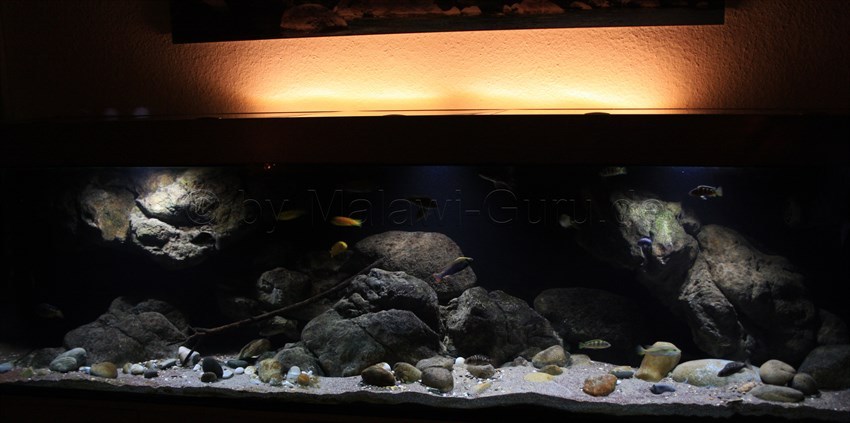 Das Malawi-Becken diente als erstes seiner Art, vielen anderen Aquarianern als Beispiel dazu, wie man mit geklebten Rockzolid Modulen an der Rückscheibe, eine andere Art der Dekoration erstellen kann.