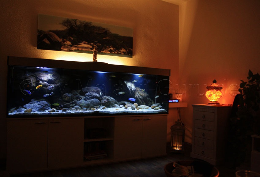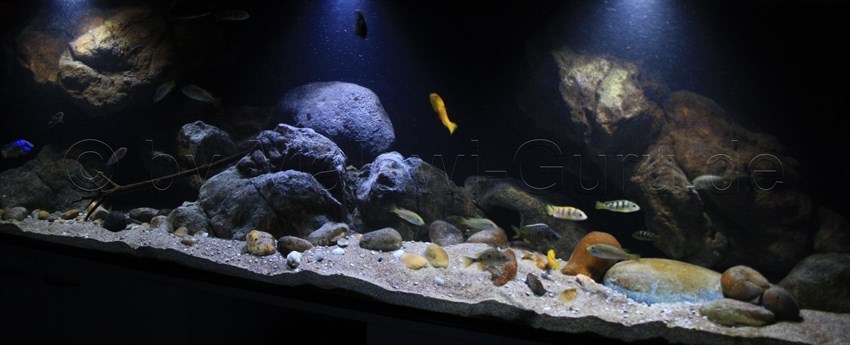 Hier nun dieses Malawisee Aquarium mit 660 Litern. Es gibt unzählige Arten sowie Ideen, wie man ein Malawisee Aquarium, auf die ganz eigene Art einrichten kann. Immer wichtig und im Vordergrund sollten die Bedürfnisse der Malawisee Buntbarsche stehen.