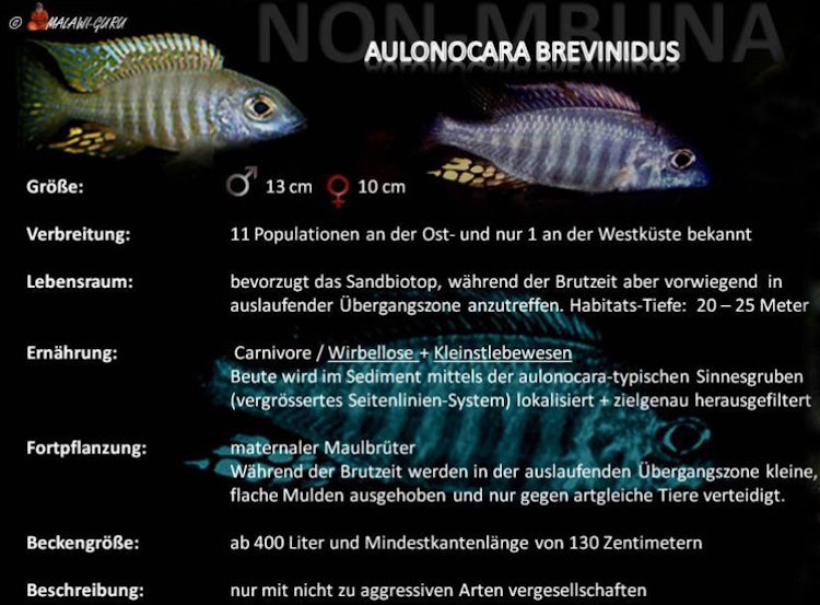 Wie bei der Mehrheit der sandbewohnenden Malawisee-Buntbarsch-Arten sind auch beim Aulonocara brevinidus keine signifikanten Variationen, unter den einzelnen Populationen festzustellen.