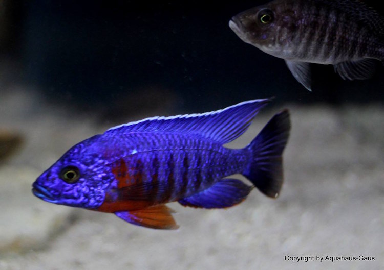 Die Weibchen dieser Buntbarsch-Art bleiben kleiner und liegen bei ca. 9 cm, allerdings kann auch der ein, oder andere Zentimeter im Malawisee-Aquarium dazukommen, wenn zu üppig gefüttert wird.