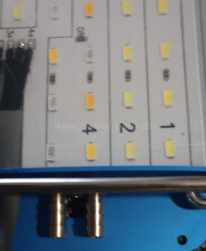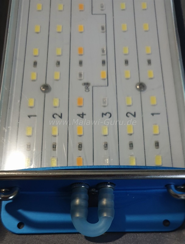 Ebenfalls vorhanden eine ‚Wärmerückgewinnung‘ an der Leuchte, ich verweise hier aber auf den weiter unten eingestellten Link direkt zur Webseite von LEDaquaristik, mit den ganz genauen Eckdaten, auch zu dieser Option.