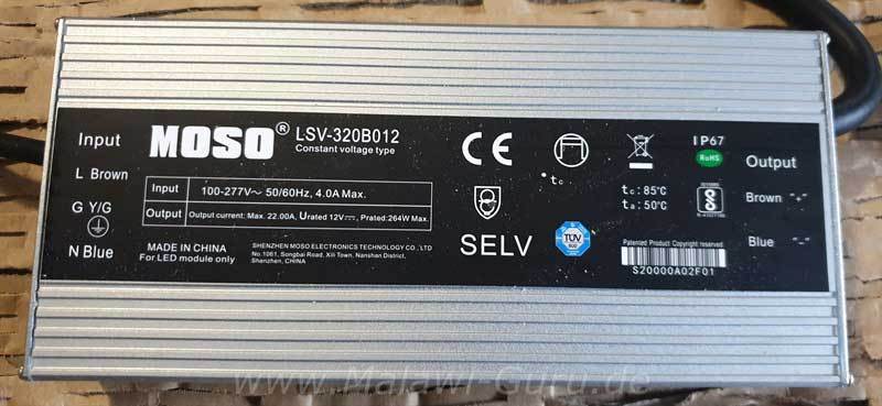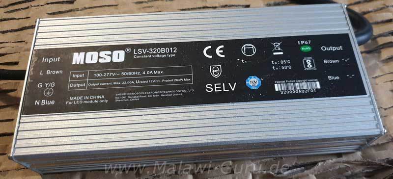 Dieses Netzteil ist schon ein echt dickes und schweres Teil, habe mich da aber im Vorfeld, auch von der Firma beraten lassen. Glaube habe das größte, was es gibt, um die Lampen korrekt mit Strom zu versorgen.