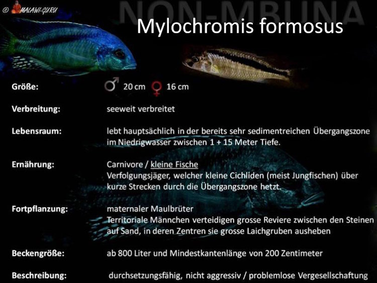 Oftmals ist der Charakter und auch die Ernährungsweise bei Mbuna und Nonmbuna sehr unterschiedlich, dieses Thema ist auch im Verzeichnis erwähnt. Nur wenige Mbuna Arten kann man mit Nonmbuna zusammen pflegen, es gibt zwar Ausnahmen, aber diese sind eher selten.