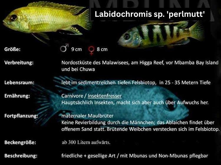 Labidochromis sp. ‚perlmutt‘, mit Informationen zu dieser Mbuna Art im Buntbarsch Verzeichnis.
