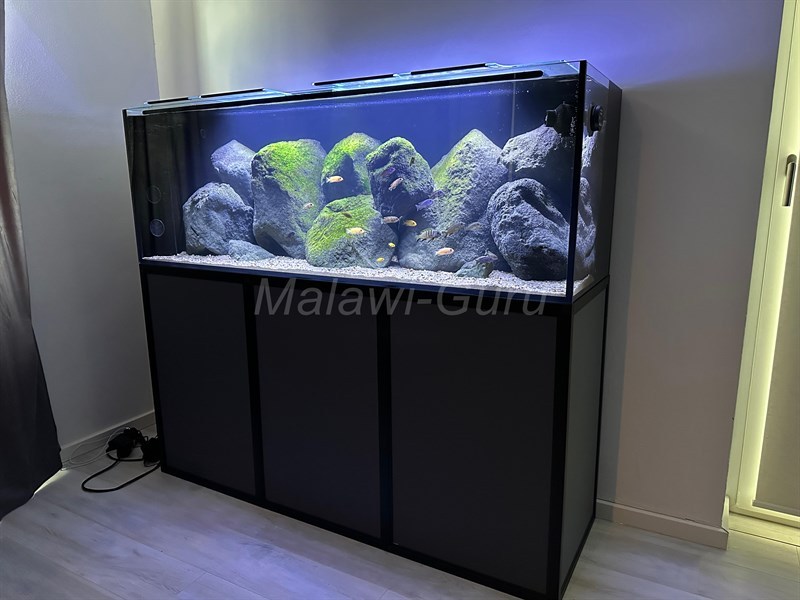 Hier nun dieses Malawisee Aquarium mit 440 Litern. Es gibt unzählige Buntbarsch-Arten sowie Ideen, wie man ein Malawisee Aquarium, auf die ganz eigene Art einrichten kann. Immer wichtig und im Vordergrund sollten die Bedürfnisse der Malawisee Buntbarsche stehen.