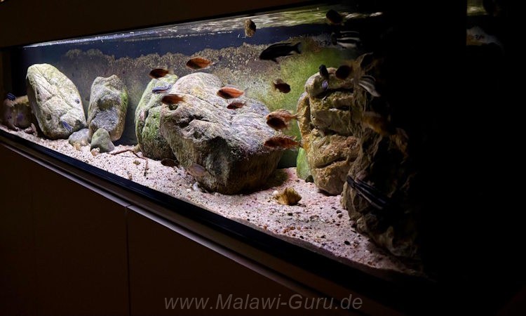 Dazu ist ein gut überlegter ‚Bodengrund‘ für das heimische Malawi-Becken wichtig. Manchmal mehr, manchmal weniger. Vor allem wenn man Malawisee-Aquarien im Lebensraum ‚reine Felszone‘ gestaltet, kann man dies entspannter angehen.