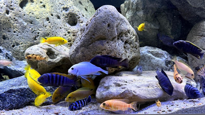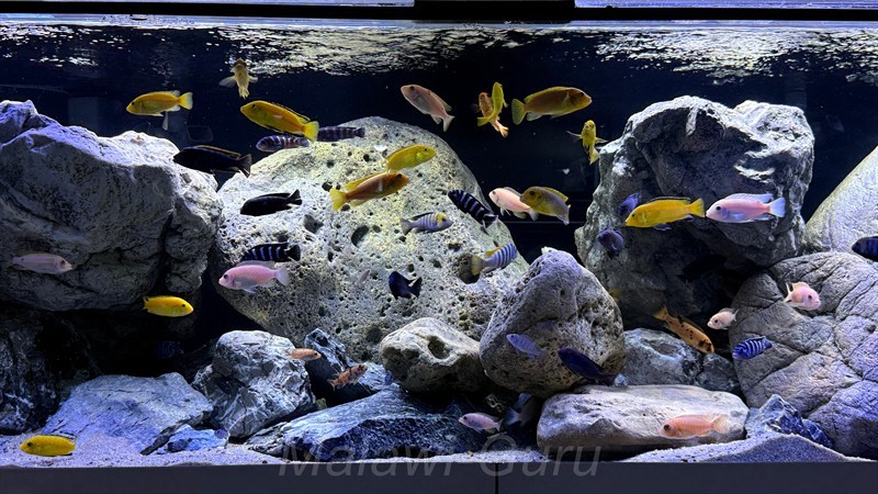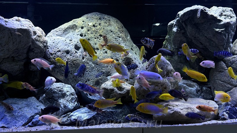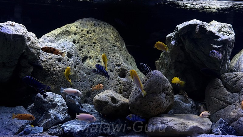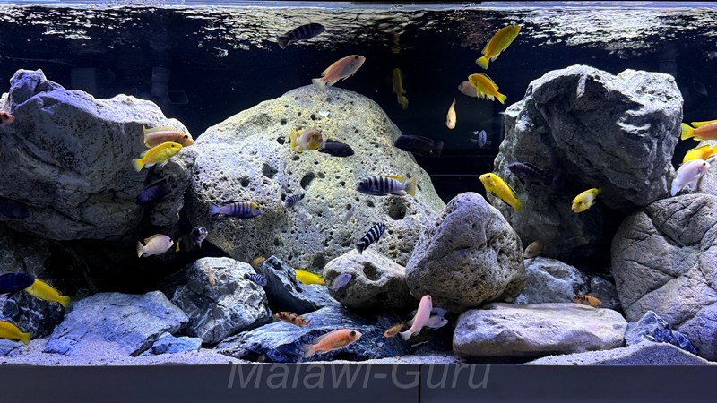 Hier jetzt dieses Malawisee Aquarium mit 720 Litern. Es gibt unzählige Buntbarsch-Arten sowie Ideen, wie man ein Malawisee Aquarium, auf die ganz eigene Art einrichten kann. Immer wichtig und im Vordergrund sollten die Bedürfnisse der Malawisee Buntbarsche stehen.