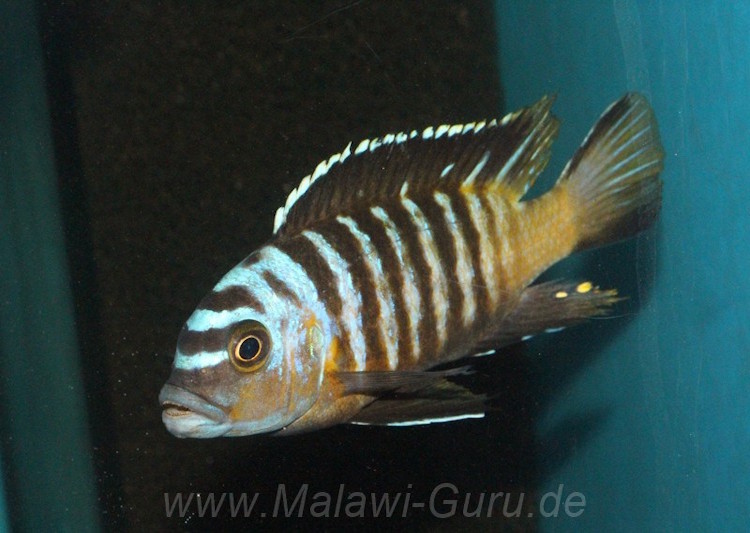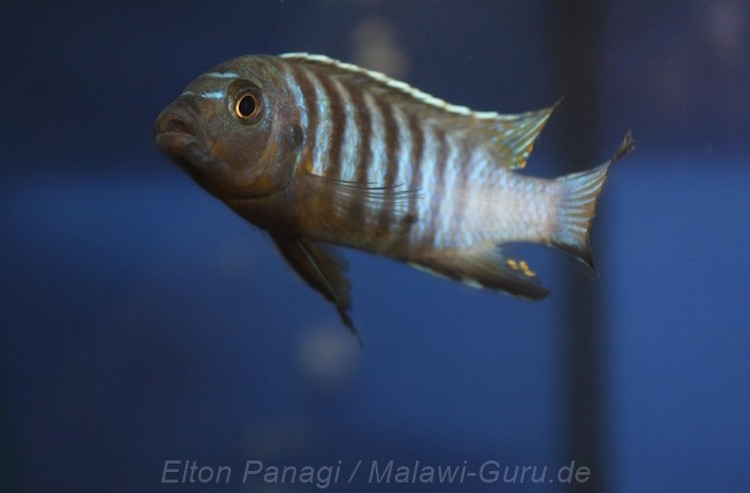 Diese hier im Bild wird nur in der Umgebung von N’kolongwe gefunden. Vorher war diese Mbuna Art auch bekannt unter den Namen folgenden Namen: Metriaclima sp.’black dorsal nkolongwe‘ und Pseudotropheus sp.’black dorsal nkolongwe‘