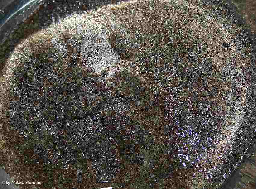 Aber es geht noch etwas feiner, im Beitrag „Bodengrund vom Malawisee“ haben wir euch einige Bilder gezeigt, die den echten Sand aus dem See zeigen. Dabei sind unterschiedliche Standorte aus dem See, in Bildern und auch Videos festgehalten.In einigen dieser Bilder, sind im Substrat eben auch winzige Minimuscheln und Minischnecken Häuser zu sehen. Dieses haben wir nun zum Anlass genommen und den Bodengrund an einem Malawisee Aquarium so umdekoriert.