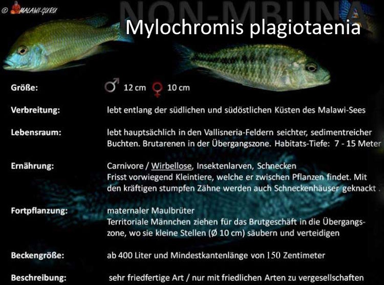 Aber auch Informationen zur Haltung und Pflege, für das Malawisee-Aquarium. Wir geben hier auch Beckengrößen mit an, die dem Malawisee-Aquarianer helfen sollen, diese doch recht aggressiven Fische im richtigen Umfeld zu pflegen.