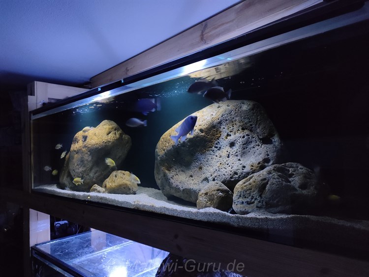 Dazu ist ein gut überlegter ‚Bodengrund‚ für das heimische Malawi Becken wichtig. Manchmal mehr, manchmal weniger, vor allem wenn man Malawisee Aquarien im Lebensraum reine ‚Felszone‘ gestaltet, kann man dies entspannter angehen.