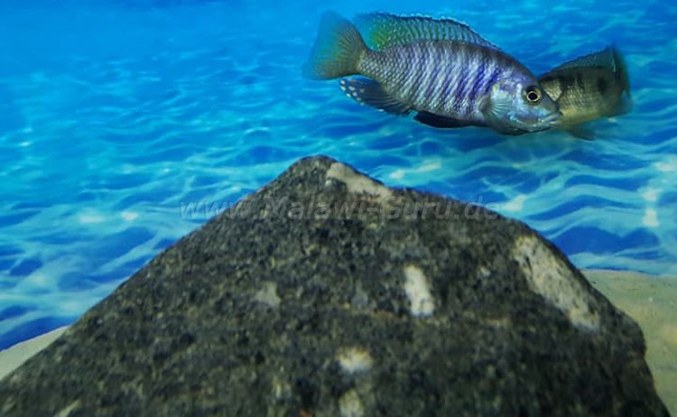 Bei der Dekoration für das Malawisee-Aquarium mit diesem Buntbarsch, sollte der Lebensraum ‚Übergangszone‚ nachempfunden werden. Hohe Steinformationen im Wechsel mit Sandflächen wären zu gestalten, dabei auch sehr große Steine verwenden, die Sichtschutz bieten können.