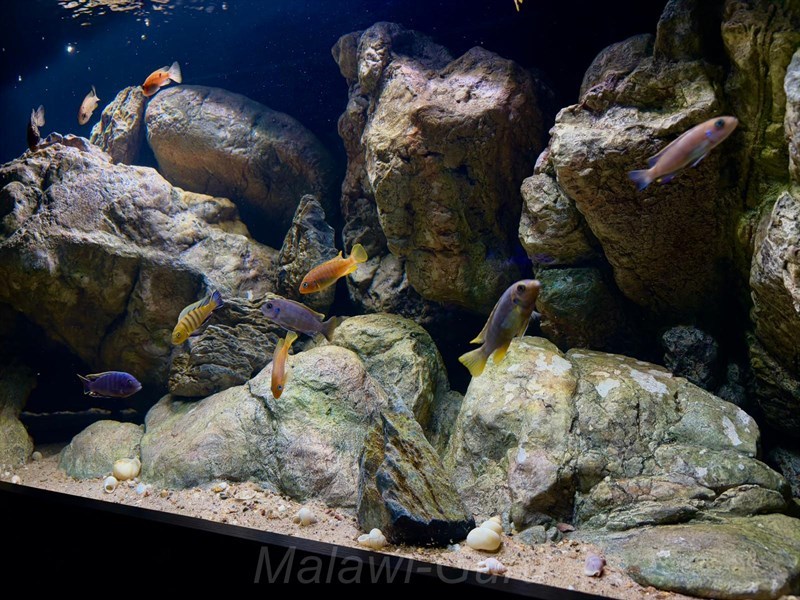 Dazu ist ein gut überlegter ‚Bodengrund‘ für das heimische Malawi Becken wichtig. Manchmal mehr, manchmal weniger, vor allem wenn man Malawisee Aquarien im Lebensraum reine ‚Felszone‘ gestaltet, kann man dies entspannter angehen.