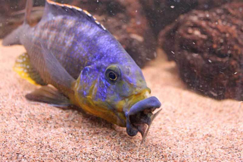 Auf keinen Fall sollten Lethrinops Arten, oder Mchenga dazu gehören, auch keine Sand Aulonocara. Ebenso sind Mbuna absolut zu vermeiden, diese Art wird wirklich sehr groß und sieht eventuell den einen, oder anderen Mbuna als Futter an. Siehe in der ‚Galerie‘ nach.