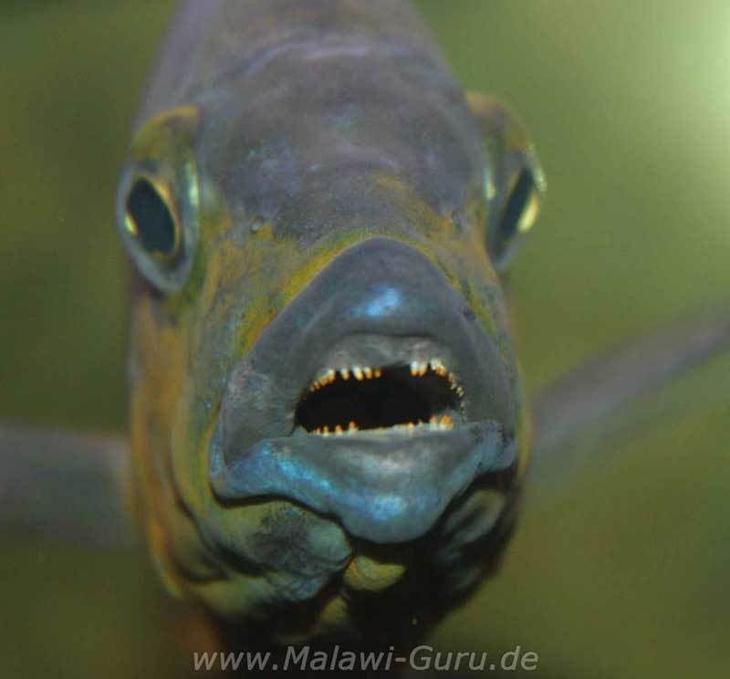 Die wulstigen Lippen dieser Nonmbuna bilden sich oft im Malawisee Aquarium zurück bei vielen Exemplaren, auch kommt es vor, dass sich diese bei Wildfängen etwas zurückbilden können.