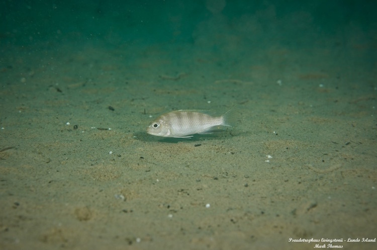 Pseudotropheus livingstonii gehört zu den wenigen Mbuna, welche meistens über reinem Sand beobachtet werden – dies aber auch nur, wenn Ansammlungen leerer Schneckenhäuser als eine Art Schutzzone zur Verfügung stehen.