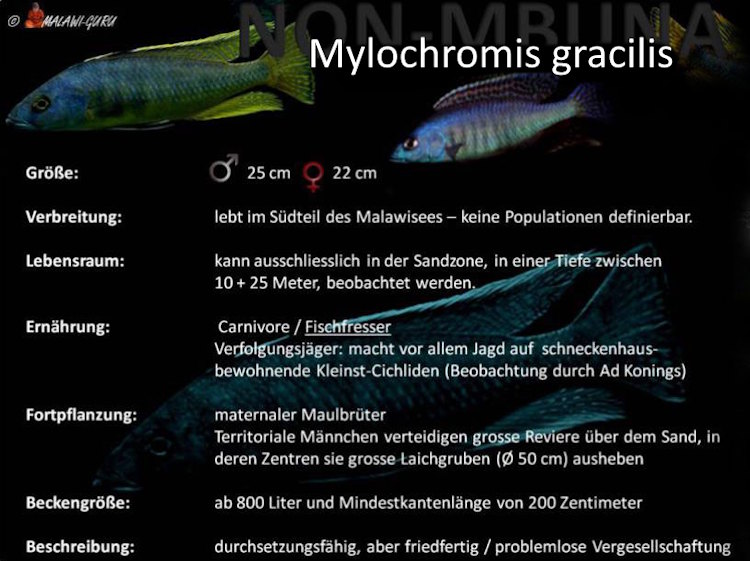 Oftmals sind der Charakter und auch die Ernährungsweise bei Mbuna und Nonmbuna sehr unterschiedlich. Dieses Thema ist auch im Verzeichnis erwähnt. Nur wenige Mbuna-Arten kann man mit Nonmbuna zusammen pflegen. Es gibt zwar Ausnahmen, aber diese sind eher selten.